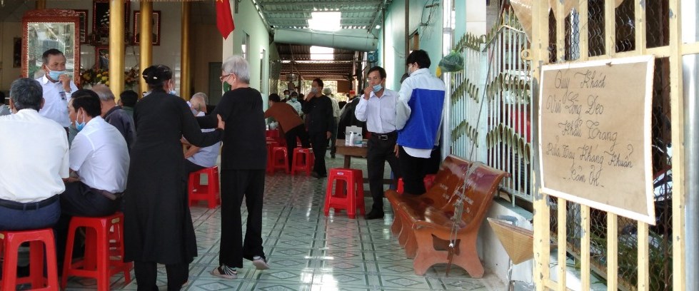Ban Trị sự xã Thành Lợi – Người già, trẻ nhỏ đều mang khẩu trang và giữ khoảng cách khi dự lễ