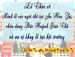 LỄ CHÀO CỜ, KỈNH LỄ CÁC NGÔI THỜ TẠI AN HÒA TỰ, CHÂN DUNG ĐỨC HUỲNH GIÁO CHỦ VÀ AN VỊ KHAY LỄ TẠI HỘI TRƯỜNG