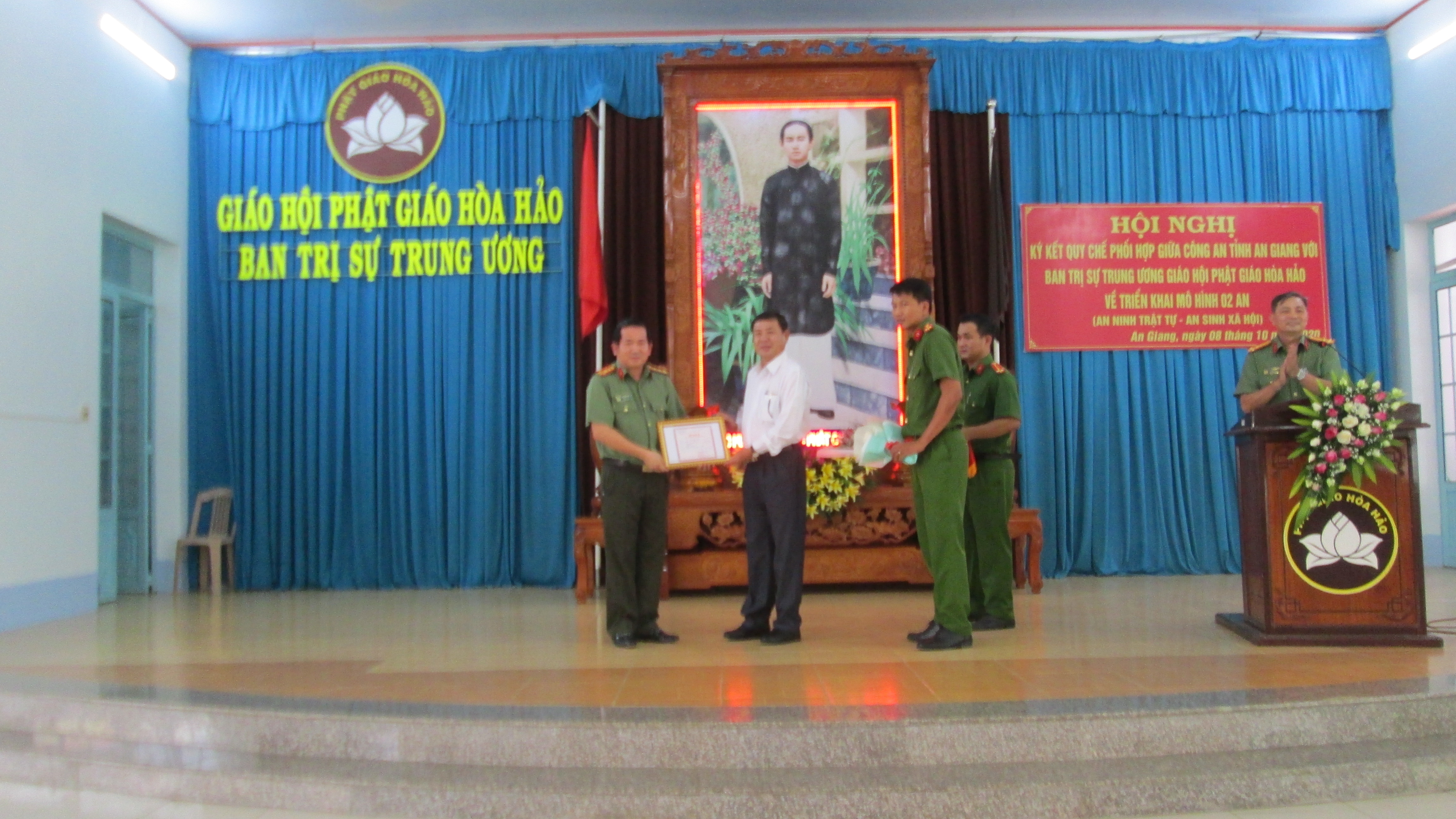 Ban Giám đốc Công an tỉnh An Giang và Ban Trị sự Trung ương Giáo hội PGHH thống nhất Ký kết quy chế phối hợp thực hiện mô hình 02 An (An ninh trật tự - An sinh xã hội) trong tín đồ PGHH trên địa bàn tỉnh. Quy chế gồm 3 chương, 8 Điều: