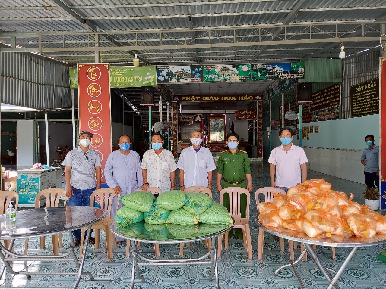 - Ngày 24/9/2021, phối hợp với Công an huyện Tịnh Biên trao 200 phần quà khu phong tỏa tại thị trấn Nhà Bàng, xã An Phú, xã Nhơn Hưng. Trị giá chuyến trao quà là 50.000.000đ.