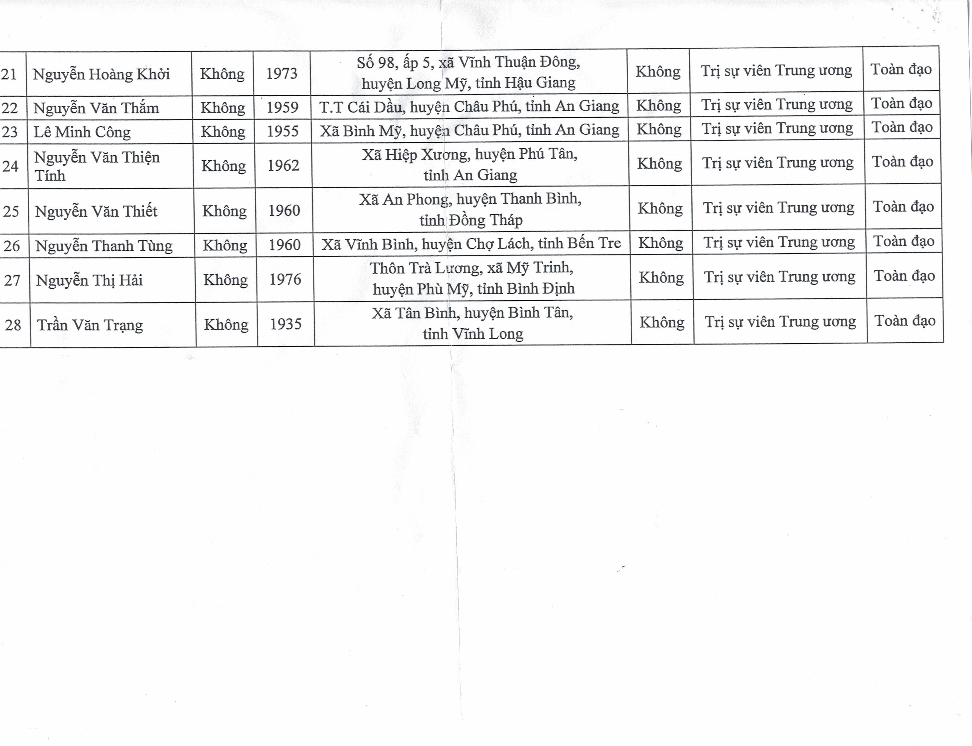 Công văn số 737/BTG-NV2 của Ban Tôn giáo Chính phủ ngày 5/7/2020 về việc chấp thuận Danh sách 28 vị Trị sự viên Trung ương Giáo hội Phật giáo Hòa Hảo nhiệm kỳ V (2019-2024)