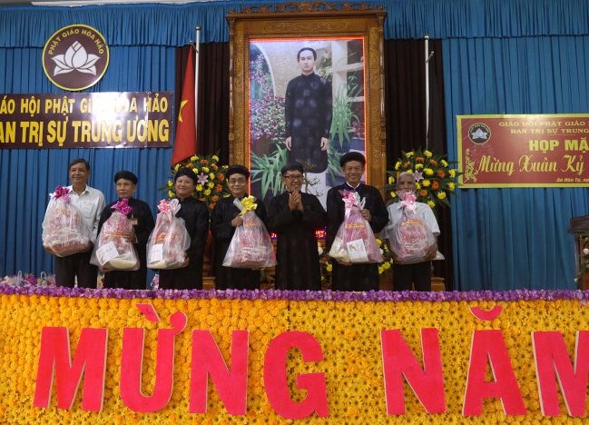 Hòa trong không khí vui tươi, phấn khởi của cả nước đang chuẩn bị chào đón một mùa xuân mới (Kỷ Hợi 2019). Sáng ngày 28/01/2019 (nhằm ngày 23 tháng Chạp năm Mậu Tuất), các Trị Sự viên, chức việc, nhân viên văn phòng và các ban Ban Trị sự Trung ương, đại diện Ban Phụng tự Tổ Đình Đức Huỳnh Giáo Chủ PGHH, Ban Trị sự cơ sở, các giáo lý viên, Mạnh Thường Quân và tín đồ PGHH tiêu biểu lại có dịp trở về hội trường An Hòa Tự (thị trấn Phú Mỹ, huyện Phú Tân, tỉnh An Giang) dự lễ Họp mặt mừng xuân Kỷ Hợi 2019 do Ban Trị sự Trung ương Giáo hội PGHH tổ chức.