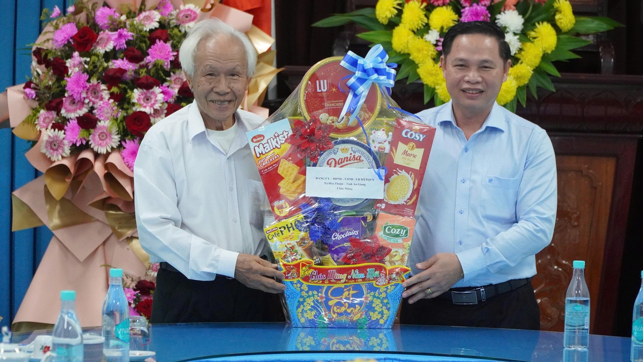 Đoàn Đảng ủy, Hội đồng Nhân dân, Ủy ban Nhân dân, Ủy ban Mặt trận Tổ quốc Việt Nam xã Hòa Thuận trao quà chúc mừng Đại lễ