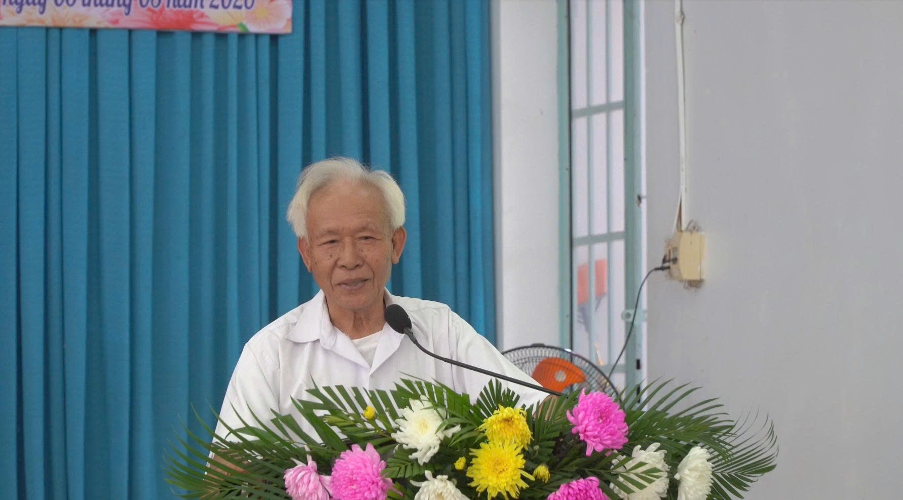 Ông Nguyễn Tấn Đạt, Trưởng Ban Trị sự Trung ương phát biểu chúc mừng nữ tín đồ Phật giáo Hòa Hảo trong buổi họp mặt