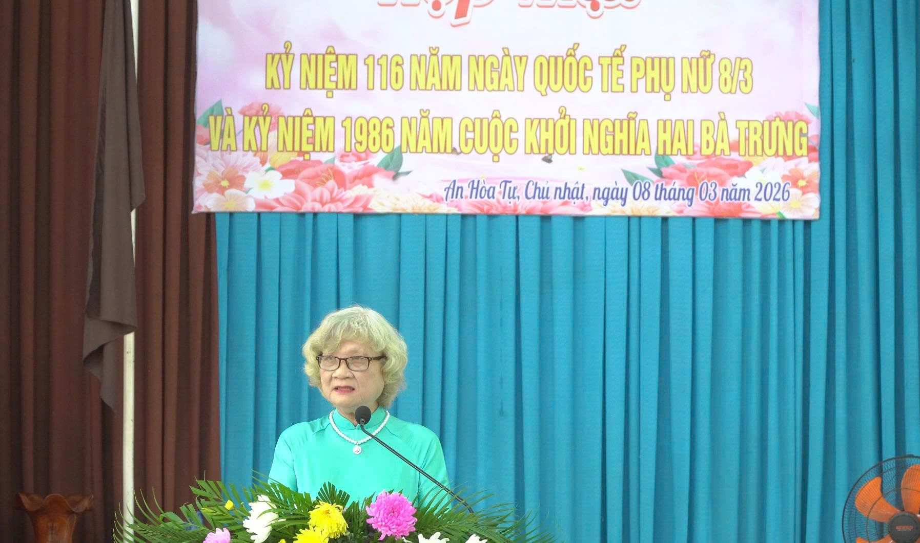 Bà Diêu Huệ Nương, Ủy viên Ban Thường trực Ban Trị sự Trung ương, Phó Trưởng Ban Tài chính phát biểu ý nghĩa ngày 8/3 và ý nghĩa lịch sử Khởi nghĩa Hai Bà Trưng