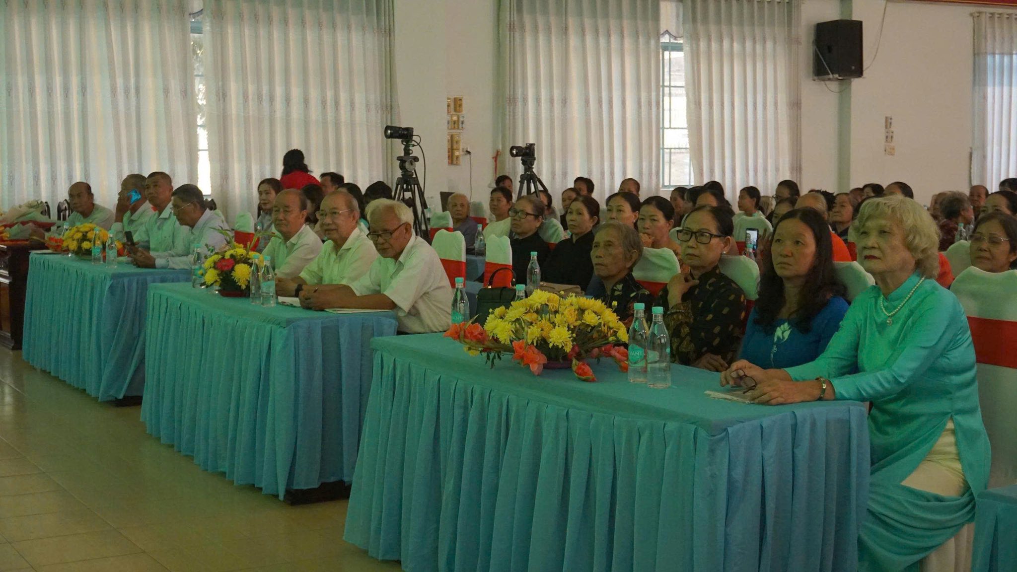 Ông Nguyễn Huy Diễm, Phó Trưởng Ban Thường trực BTSTƯ GH PGHH, Hiệu trưởng Trường Trung cấp PGHH trao hoa tri ân những đóng góp của các vị nữ chức việc