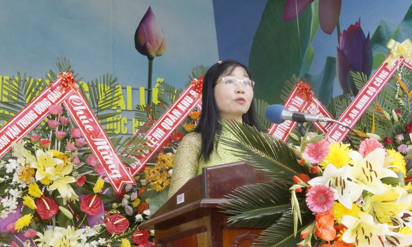 Bà Lê Kim Phượng - Phó Vụ trưởng Vụ đoàn thể Ban Dân vận Trung ương tặng hoa chúc mừng