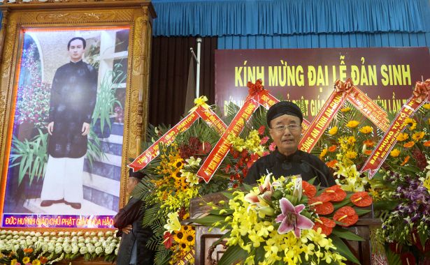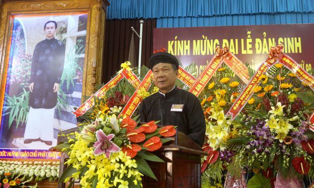 Ông Lê Ngọc Lợi – Phó Trưởng ban Ban Trị sự Trung ương kiêm Trưởng ban Ban Từ thiện Xã hội đáp từ của Ban Tổ chức tuyên bố bế mạc phần hành chánh lễ Đại lễ Đản sinh Đức Huỳnh Giáo Chủ PGHH kỷ niệm lần thứ 98