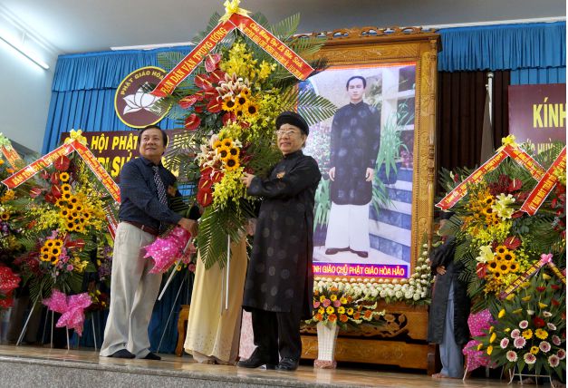 Ông Bùi Văn Đương – Phó Trưởng ban Ban Trị sự Trung ương kiêm Phó Ban Phụng tự Tổ đình tặng hoa chúc mừng