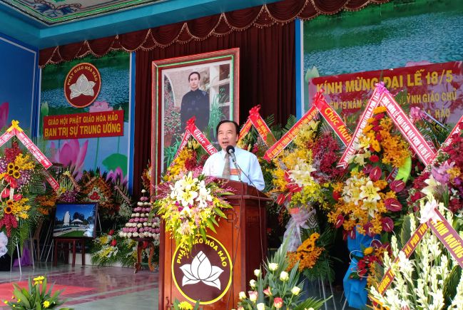 Nhân dịp này, ông Trần Tấn Hùng thay mặt Ban Tôn giáo Chính phủ phát biểu chúc mừng Đại lễ, ghi nhận và biểu dương thành tựu đạo sự và những đóng góp của Giáo hội và bà con tín đồ trong thời gian qua, đặc biệt là công tác từ thiện xã hội với nhiều mô hình hay đã giúp đỡ thiết thực cho những hoàn cảnh khó khăn, góp phần thay đổi bộ mặt nông thôn, xây dựng đất nước ngày thêm giàu mạnh.