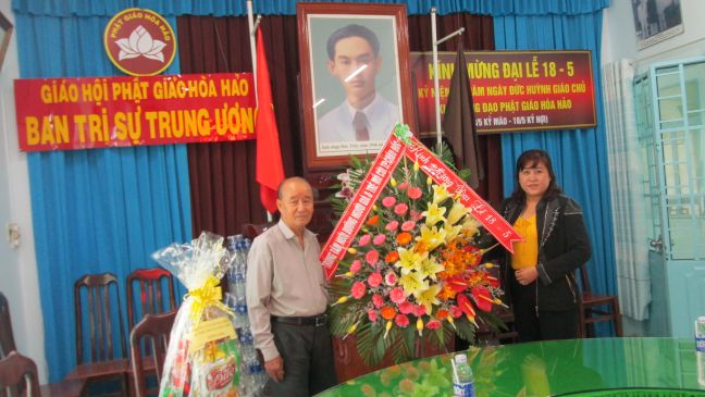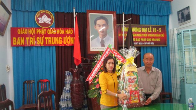 Sáng cùng ngày (17/6/2019), Đoàn Trung tâm nuôi dưỡng người già, trẻ mồ côi thành phố Châu Đốc (An Giang) do bà Nguyễn Thị Bích Thuận – Giám đốc Trung tâm làm trưởng đoàn cũng đã đến thăm và chúc mừng Ban Trị sự Trung ương Giáo hội Phật giáo Hòa Hảo nhân dịp Đại lễ 18/5 Kỷ Hợi.