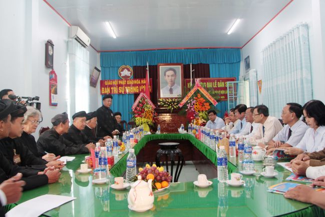 Ông Nguyễn Tấn Đạt, Trưởng ban Ban Trị sự Trung ương Giáo hội PGHH; ông Lê Ngọc Lợi, Phó Trưởng ban Ban Trị sự Trung ương, Trưởng Ban Từ thiện Xã hội; ông Lê Văn Thưởng, Phó Trưởng ban Ban Trị sự Trung ương, Trưởng Ban Tài chính và các trị sự viên thân mật tiếp đoàn