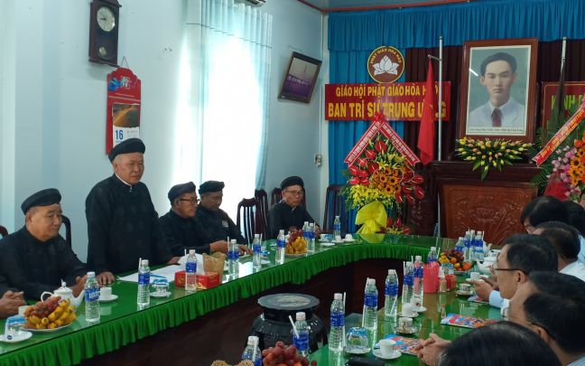 Tại buổi thăm, Phó Bí thư Thường trực, Chủ tịch HĐND tỉnh An Giang Võ Anh Kiệt đã thay mặt đoàn ân cần hỏi thăm sức khỏe và gửi lời chúc mừng an lành, hạnh phúc đến lãnh đạo Ban Trị sự Trung ương, trị sự viên, chức việc, nhân viên cùng toàn thể bà con tín đồ.