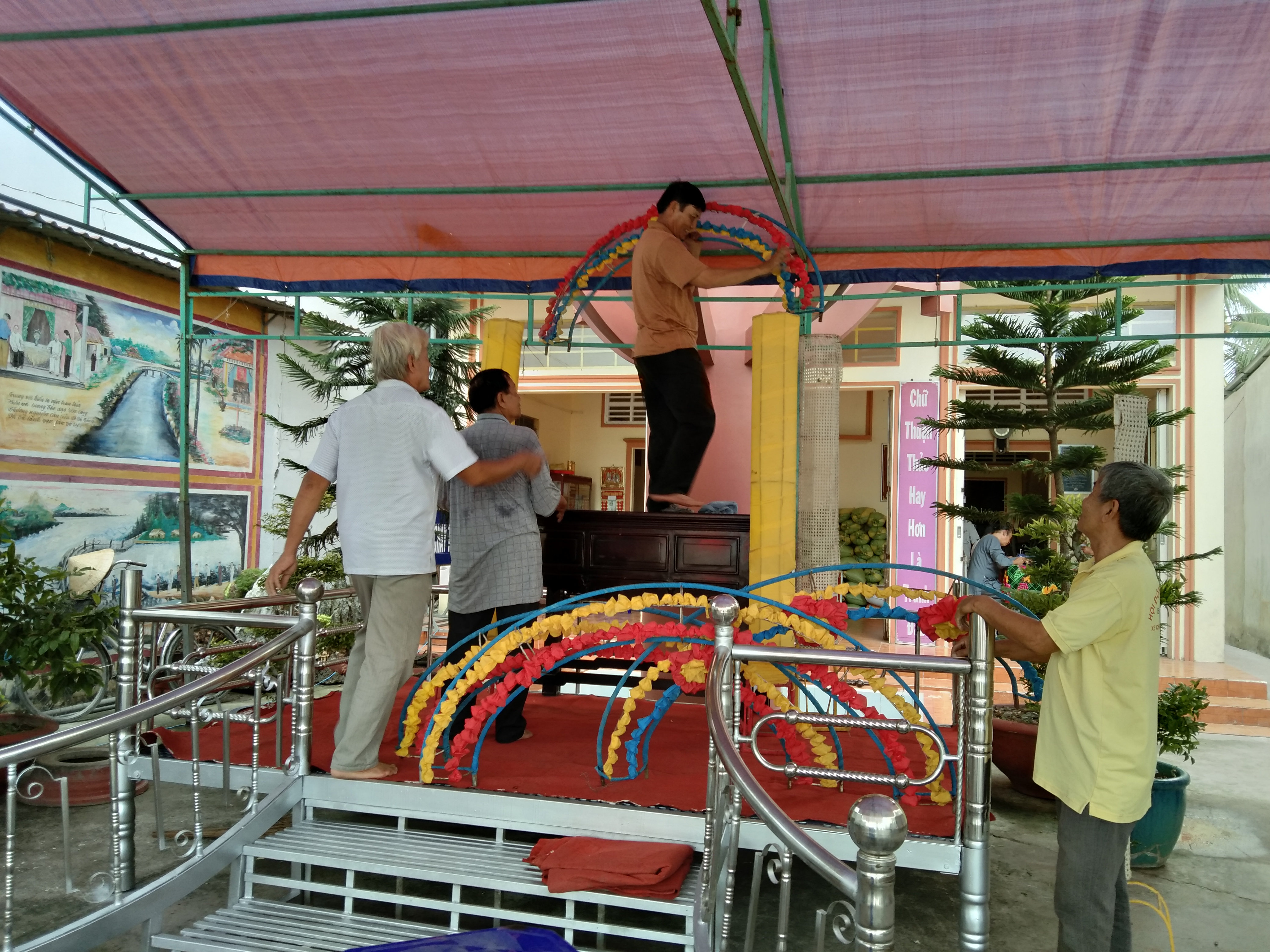 Về khâu chuẩn bị lễ đài, cờ, hoa, tôn trí chân dung Giáo chủ - vị khai cơ hóa đạo ở các điểm lễ cơ bản đã hoàn thành, chỉ còn vài công đoạn cuối cùng đang gấp rút hoàn tất. Là vùng sâu, nơi có ít dân cư và tín đồ chưa tập trung, có điểm lễ phải 3 Ban Trị sự tổ chức chung một điểm và luân phiên nhau hằng năm, như điểm lễ ở Ban Trị sự xã An Phước năm nay. Có điểm lễ chỉ tập trung tôn trí chân dung Giáo chủ để biểu hiện lòng tôn kính.