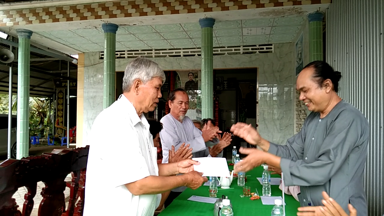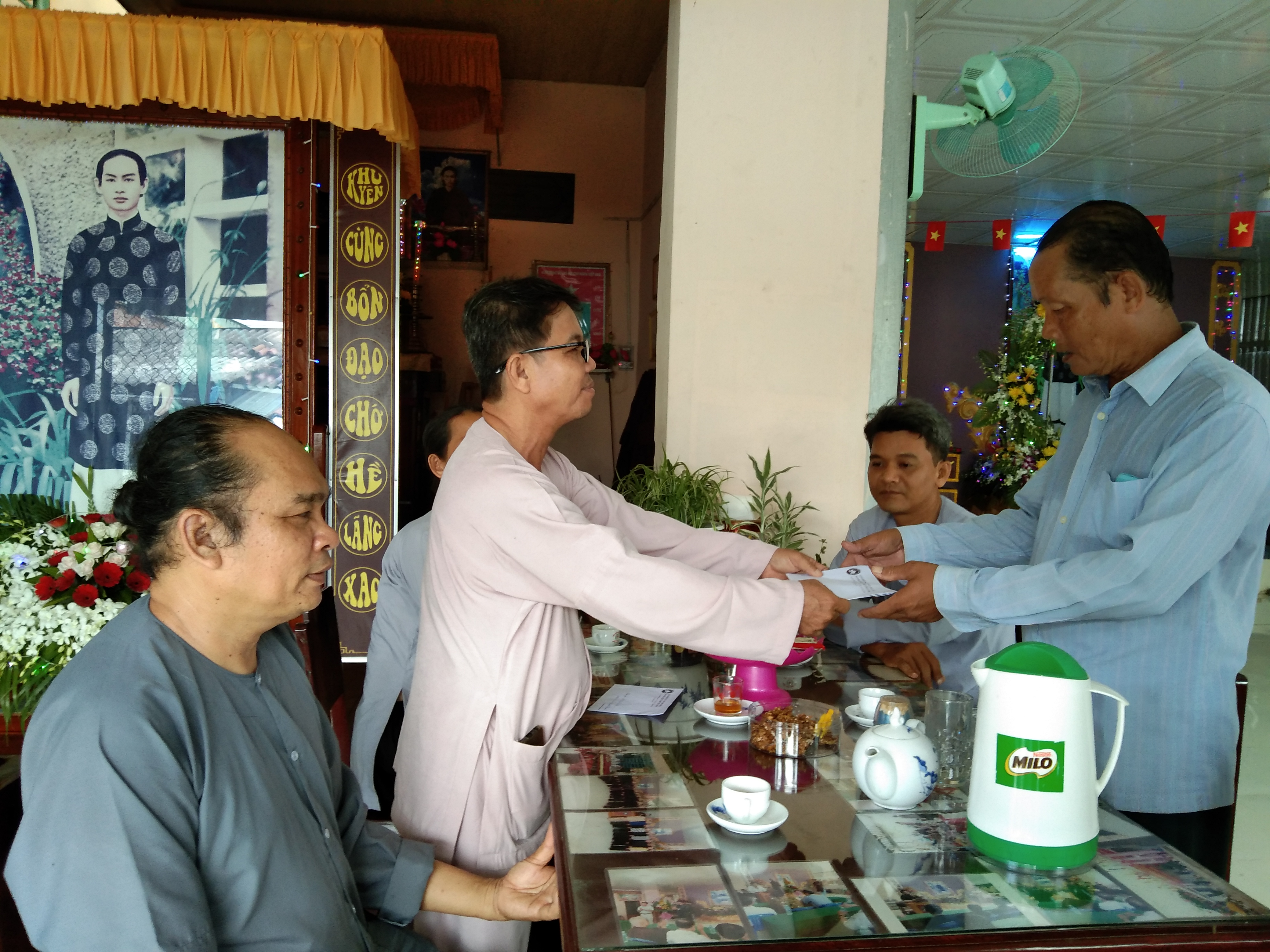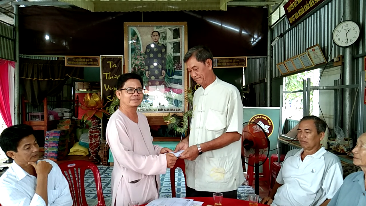 Ban Đại diện Phật giáo Hòa Hảo tỉnh Vĩnh Long trao quà cho Ban Trị sự GH PGHH xã Tân Long