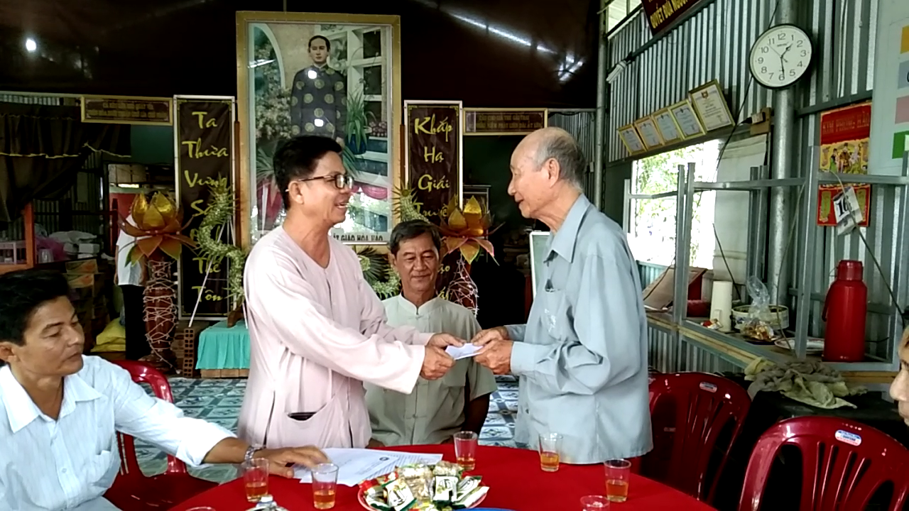 Ban Đại diện Phật giáo Hòa Hảo tỉnh Vĩnh Long trao quà cho Ban Trị sự GH PGHH xã Tân Phú