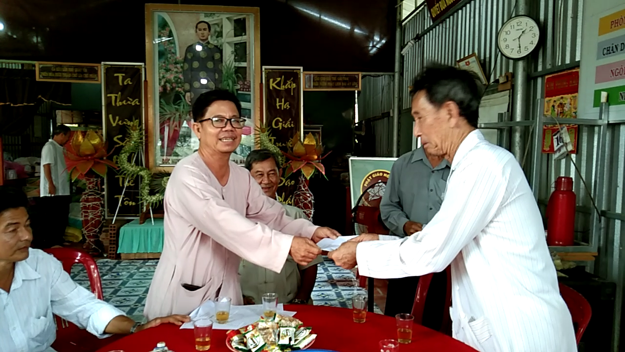 Ban Đại diện Phật giáo Hòa Hảo tỉnh Vĩnh Long trao quà cho Ban Trị sự GH PGHH xã Đông Thành