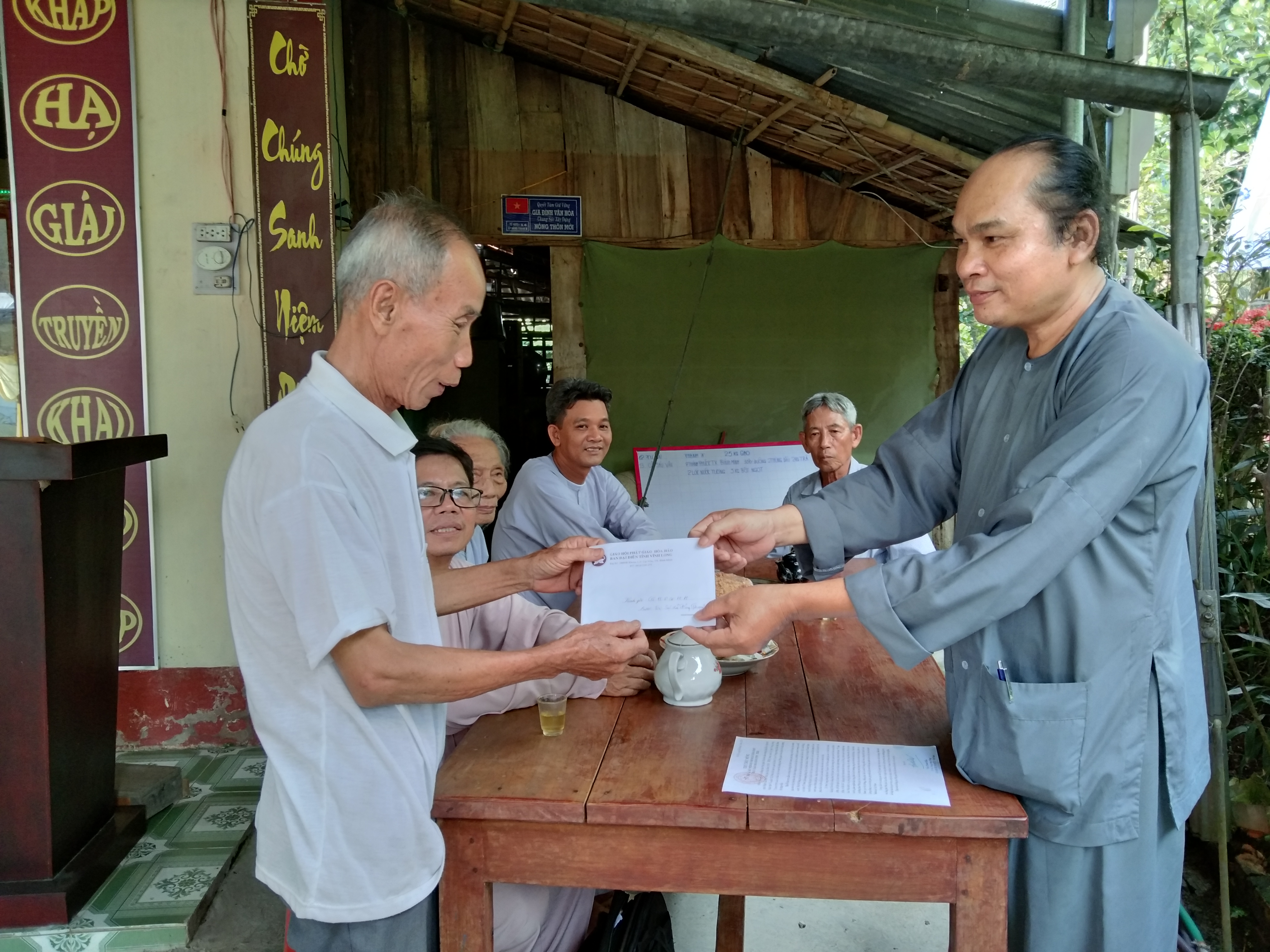 Ban Đại diện Phật giáo Hòa Hảo tỉnh Vĩnh Long trao quà cho Ban Trị sự GH PGHH xã Ngãi Tứ