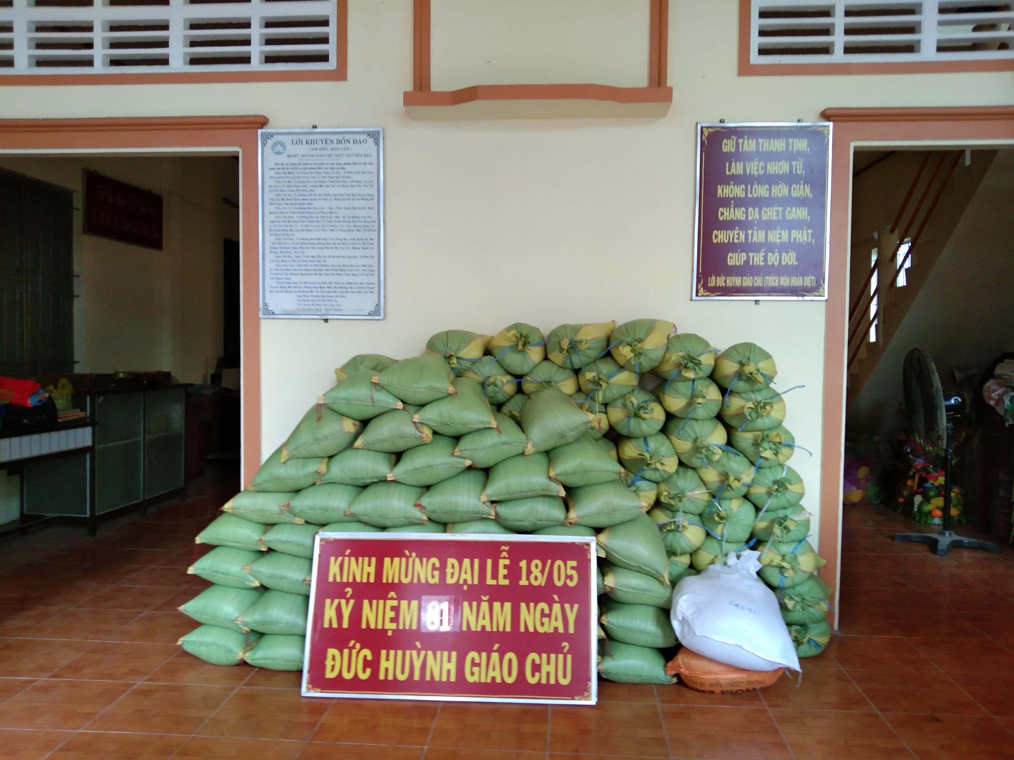 Hầu hết các điểm lễ đều chuẩn bị quà gồm gạo và các nhu yếu phẩm cần thiết khác để cùng bà con nghèo địa phương chung vui ngày tết đạo – cách biểu hiện, chia sẻ niềm vui, sự phấn khởi của chung tín đồ Phật giáo Hòa Hảo trong ngày đại lễ.