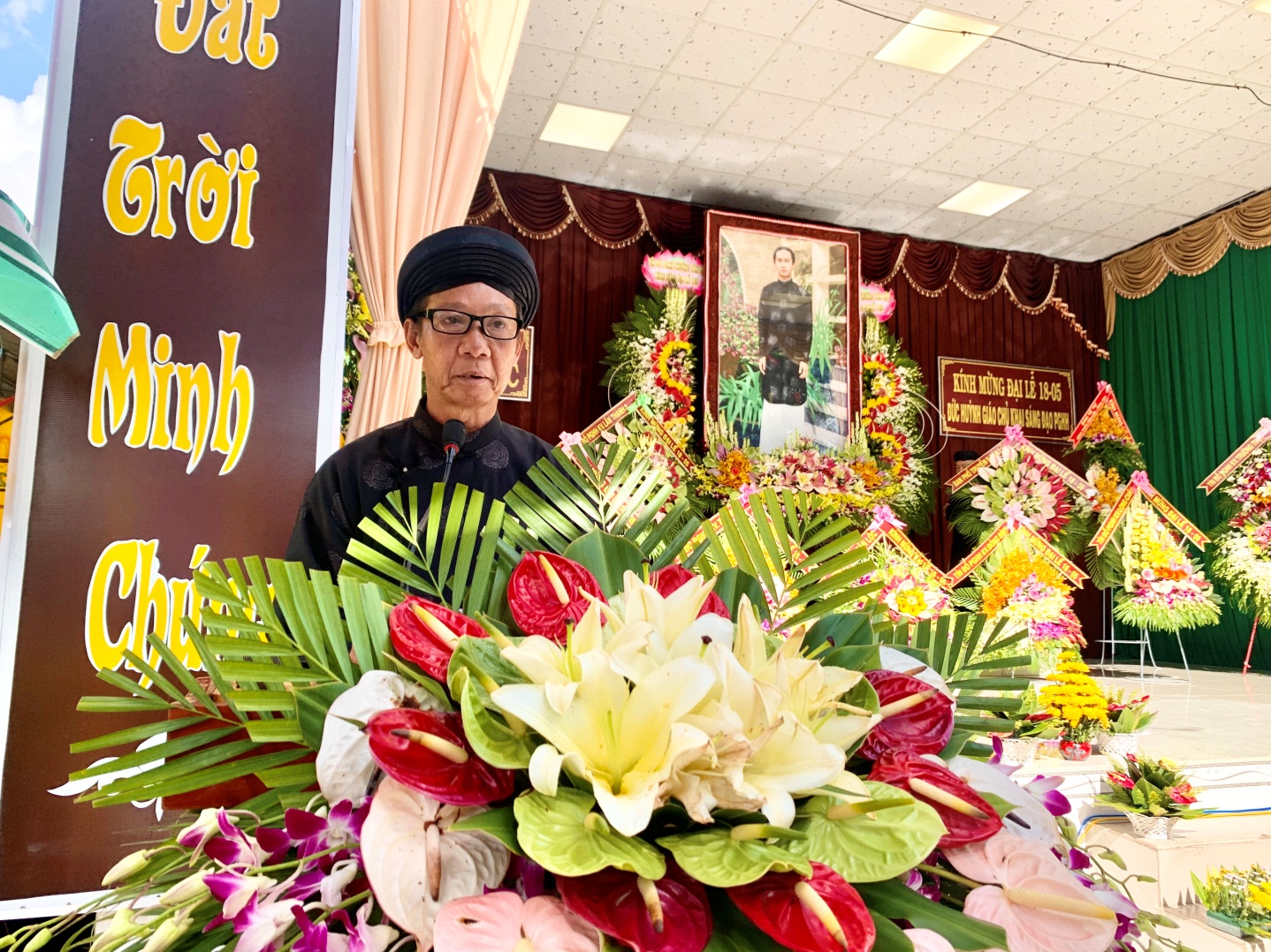 Ông Nguyễn Quốc Huy, Trưởng ban Ban Trị sự Giáo hội Phật giáo Hòa Hảo phường Tân Lộc phát biểu Diễn văn khai mạc Đại lễ