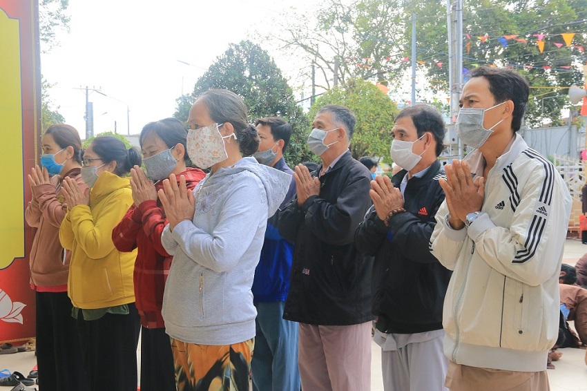 Bà con tín đồ luôn đeo khẩu trang trong suốt quá trình tham gia lễ